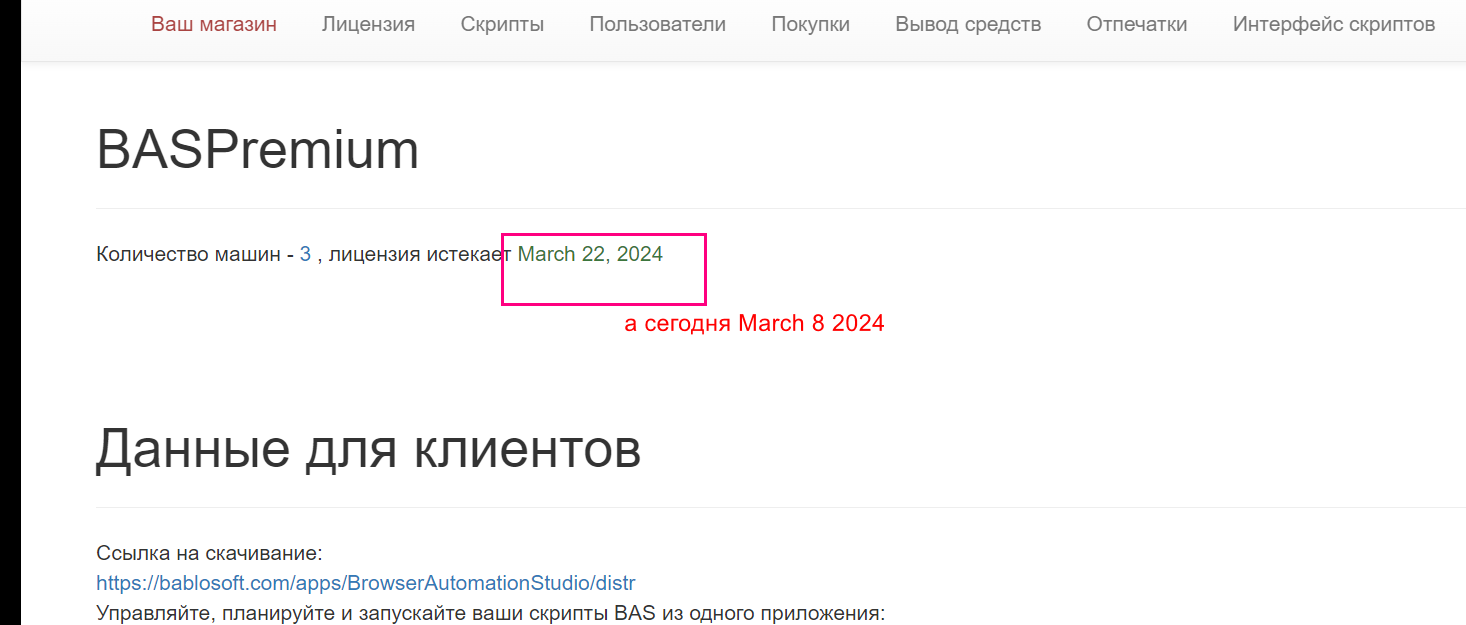 У меня лицензия Bas премиум еще пару недель будет работать.